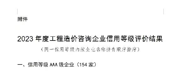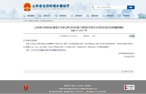 2024年7月24日,山东省住房和城乡建设于公布了2023年度工程造价咨询企业信用等级评价结果的通知,本次工程造价咨询企业信用等级评价全省共有828家企业参加,我单位在此次信用等级评价中荣获信用等级AAA级企业。